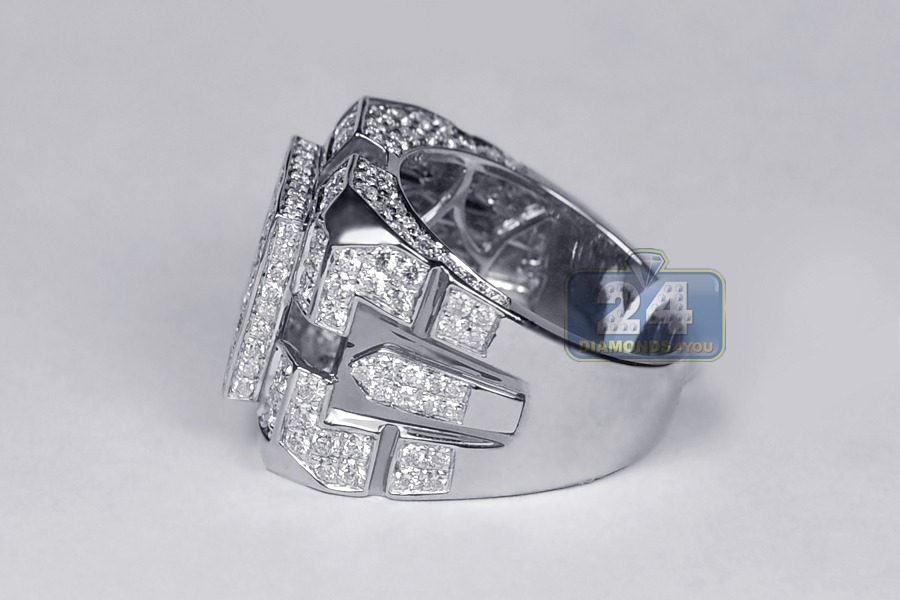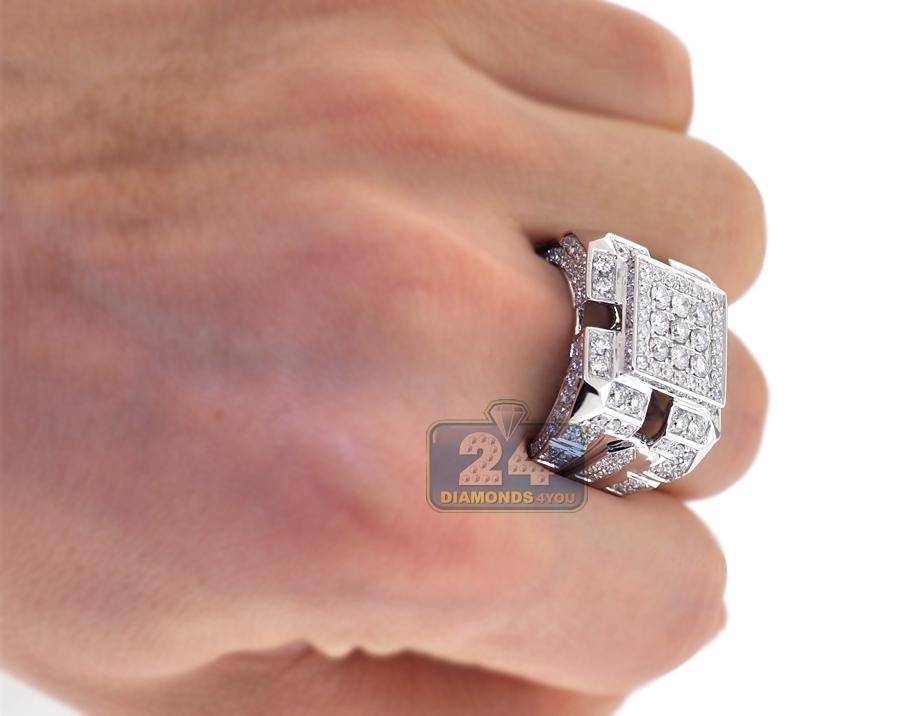 8. Mens Square Diamond Signet Ring 14K White Gold 4 07 ct