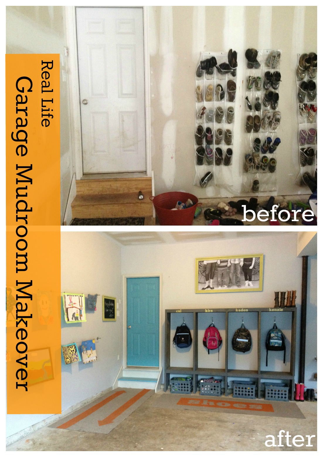 13. Custom Painted Runner Rugs Garage Mudroom Makeover