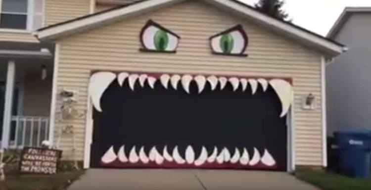 2. Monster Garage Door Goes Viral Since Last Halloween