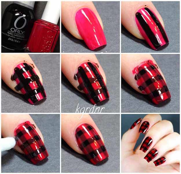 17. Buffalo Red and Black Plaid Nail Art Tutorial