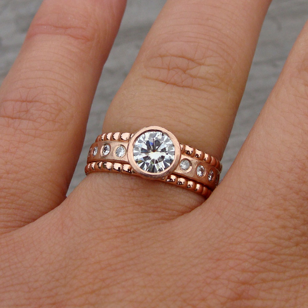 7. Rose Gold Diamond Engagement Rings and Wedding Bands