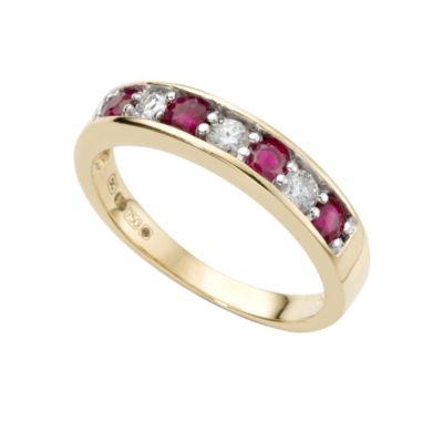 from 9ct yellow Gold round Ruby & Diamond Eternity Ring